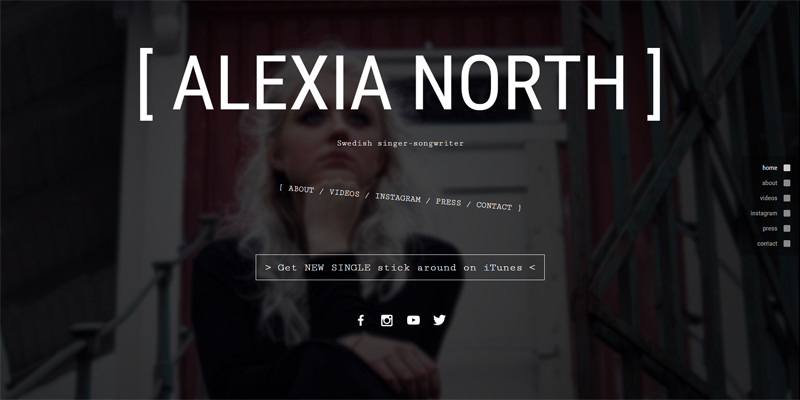 Utvecklar och underhåller webbsida för artisten Alexia North.